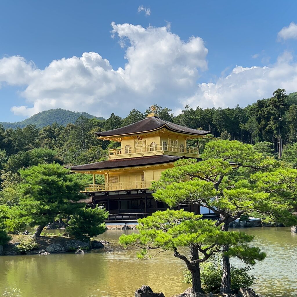 もともとは室町幕府三代将軍・足利義満が1397年に造った別荘「北山殿」が始まりで、その後、禅寺として受け継がれてきた。現在の建物は1950年の火災後に再建されたもので、今も京都を象徴する景色として多くの人を魅了している。